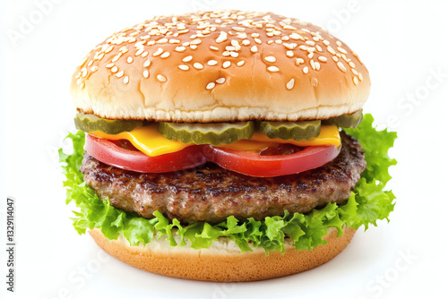 hamburger, burger, food, sandwich, beef, cheese, bun, white, background, isolated, fast food, lunch, dinner, tasty, delicious, grilled, fresh, lettuce, tomatoes, onion, pickle, american, snack, classic, meal, juicy, crispy, savoury, ketchup, mustard, sesame, casual attire, indulgent, stacked, modern, bite, traditional, epicure, beefburger, appetising, simple, hand-held, favourite