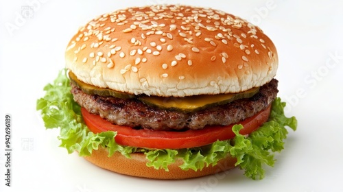Classic hamburger stock photo, isolated in white