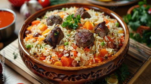 food, eatery, cooking, meat, asian, rice, healthy, plate, carrot, dinner, meal, cookery, lunch, dish, fried, traditional, basmati, pilaf, oriental, uzbek, cooked, eastern, receipe, turkish