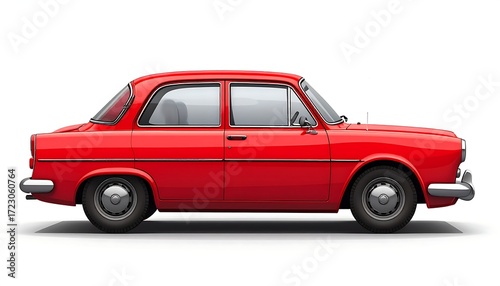 Classic red four-door sedan, side profile view