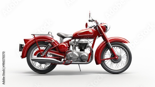 Classic red vintage motorcycle with chrome details and retro design, captured against a clean white background for a timeless look.