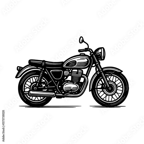 Classic Vintage Motorcycle Retro Style Side View Detailed Black and White Outline Line Art Drawing Vector Illustration