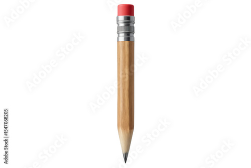 Classic wooden pencil with a red eraser and metal ring, isolated on a transparent background, ready for creative projects