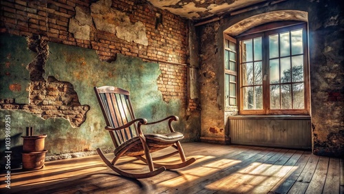 Classic Wooden Rocking Chair in Urban Exploration Setting for Cozy Interior Design Inspiration