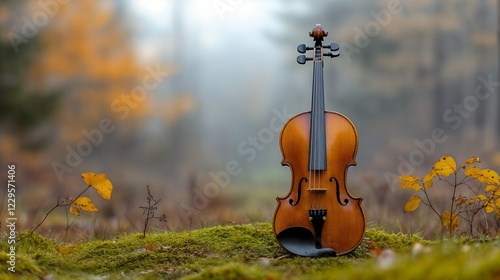 Classical violin in autumn nature setting. Perfect for music, artistic photography, and outdoor performance themes.