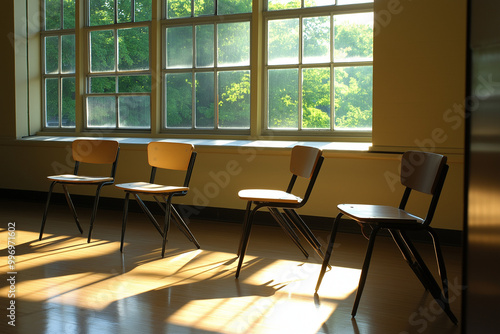classroom, during, recess, empty, chair, desk, moment, stillness, bustling, school, day, quiet, peaceful, calm, serene, tranquil, undisturbed, abandoned, deserted, vacant, unoccupied, lifeless, silent, motionless, glacé