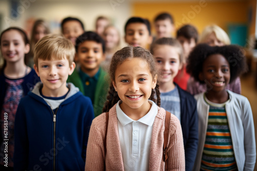 Classroom Harmony: Group of Elementary School Students Standing Together, Creating a Positive Atmosphere of Learning and Friendship