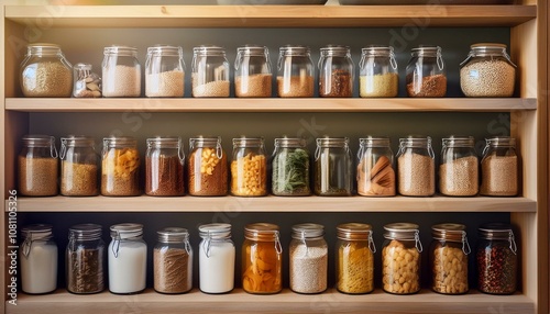 Clean and Organized Pantry Shelf with Jars