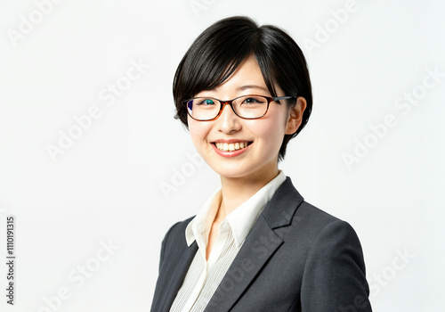 woman, japanese, suit, business, portrait, smile, cleanliness, professional, natural, carrier, confidence, light, job hunting, front, modern, waist up, coiffure, office