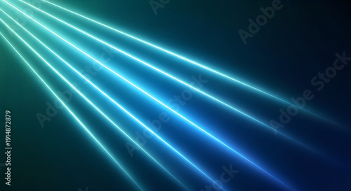Clean diagonal light beams in blue and green, abstract futuristic laser ray background, stage lighting effect