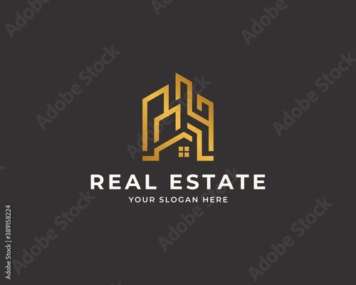 Clean house logo vector. Creative abstract real estate design tempate
