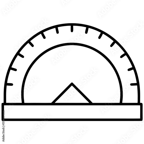 Clean line art illustration of a protractor with degree markings isolated on white background