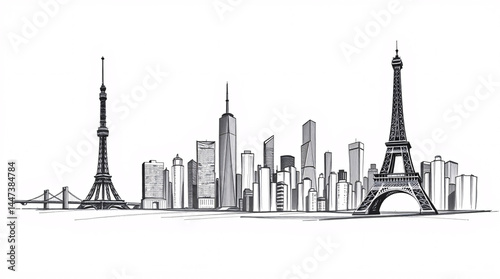 Clean line drawings represent global capitals with sharp precision and elegant minimal form.