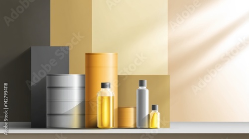 Clean Mockup Background for Corporate Presentation Featuring Oil Containers in Various Shapes and Sizes