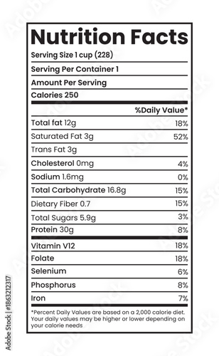 nourishment, fact, label, vector, food, health, info, editable, design, cardboard box, ingredient, vitamin, mineral, calorie, fat, sugar, protein, fiber, diet, wellness, infographic, clean, organic, healthy, product, layout, document, chart, nutrient, supplement, beverage, meal, packaged, breakdown, table, datum, macro, guide, consumer, printable, realistic