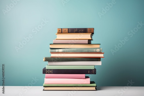 Clean Stack of Books with Text Space, clean background, clear messaging, education