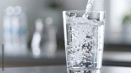 Clean water being poured into a glass, showcasing the transparency and freshness of the drink.