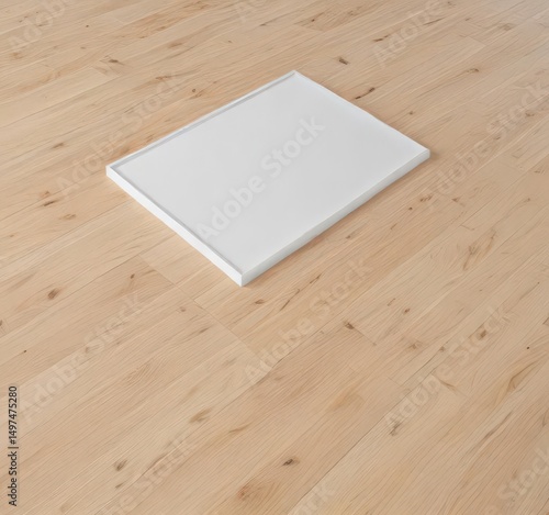 Clean white frame on light wood floor, perfect for design showcases , simple, visual, mockup