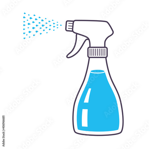 spray, bottle, cleaning, disinfectant, sprayed, hygiene, isolated, icon, cartoon, virus, equipment, chemical, hygienic, cleaner, liquid, domestic, washer, housekeeping, household, housework, home, sanitary, container, product, plastic, cleanser, detergent, trigger, tidy, soap, laundry, item, moisturiser, water, vector, illustration, object, drop, line, flat