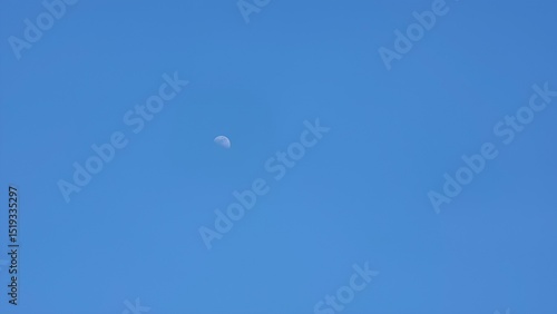 Clear blue sky with afternoon moon, green forest mountains, and peaceful nature scenes captured in South Korea