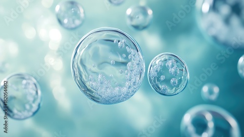 Clear bubbles float against a soft, ethereal backdrop