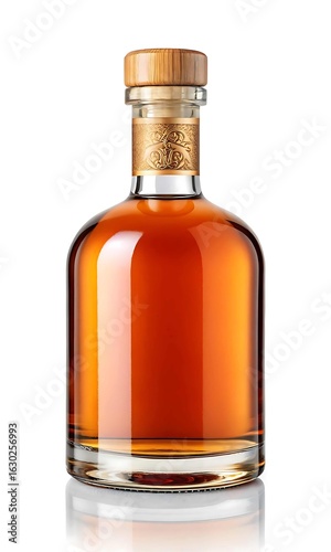 bottle, glasses, liquid, amber, drink, alcohol, whiskey, bourbon, brandy, rum, liqueur, beverage, spirit, cocktail, bar, liqueur, refreshment, container, cardboard box, studio, shot, cut-out, isolated, white, background, clear, transparent