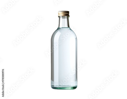 Clear Glass Bottle Filled With Clear Liquid With Golden Cap on a Transparent Background Isolated Object Studio Shot