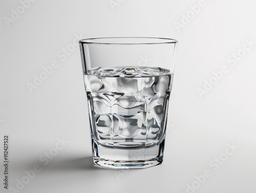 Clear Glass Filled With Water and Ice Cubes on a Simple Background