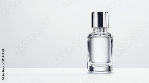 Clear Glass Perfume Bottle with Silver Cap on White Background