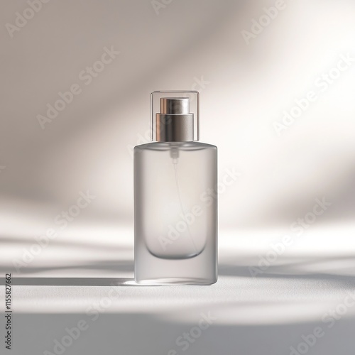 perfume, bottle, glasses, spray, silver, clear, transparent, fragrance, cosmetic, beauty, container, cardboard box, product, template, design, elegant, luxury, modern, minimalist, simple, clean, fresh, light, shadow, background, white, studio, photo, image, illustration, object, shape, rectangular, cap, top, dispenser, atomizer, scent, aroma, essence, liquid