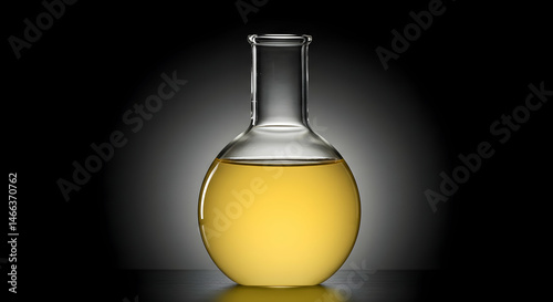 Clear Laboratory Flask with Yellow Liquid on Dark Background