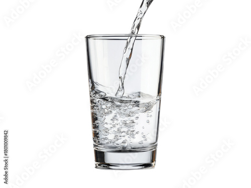 Clear liquid pouring into glass creating bubbles water, Isolated, Png Transparent Background