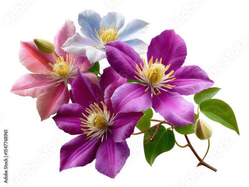 Clematis Flower in Bloom: A captivating close-up reveals the intricate beauty of clematis flowers in full bloom. Each petal unfurls with delicate grace, revealing vibrant shades and intricate details.