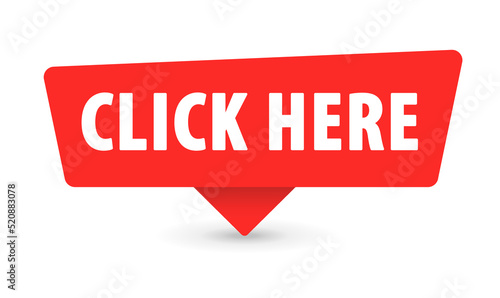 click, here, banner, speech bubble, label, tags, ribbon, sticker, template, vector, text, illustration, badge, cut-out, origami, paper, poster, signs, web, white background, red, yellow, black, motto
