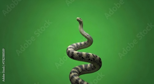 Climbing snake with patterned skin. Animal illustration background. Effect for chromakey isolated on green screen.