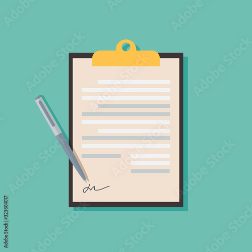 clipboard paper with pen and signature icon symbol for business flat vector illustration
