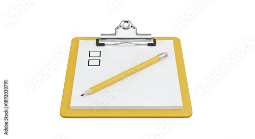 clipboard, checklist, crayons, task, writing, paper, office supply, organisation, education, planning, survey, questionnaire, business, stationery, empty, blank, document, yellow, white background, minimalist, simple, list, action, completion, assignment, work
