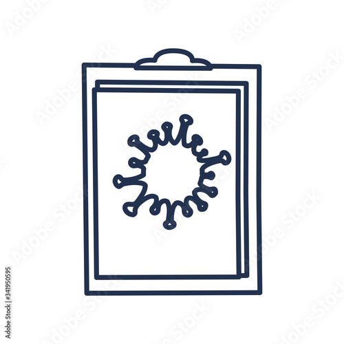 line, style, icon, clipboard, paper, sheet, board, table, document, holder, note, medicals, report, dangerous, health, infection, disease, medicine, pneumonia, 2019, pandemic, epidemic, respiratory, disease, viral, vector, microbiology, outbreak, fever, danger, human, flu, flu, sick, biology, protection, treatment, microbe, patient, transmit, warning, design, white background