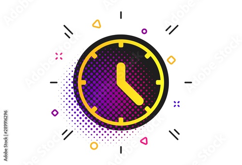 Clock sign icon. Halftone dots pattern. Mechanical clock symbol. Classic flat clock icon. Vector