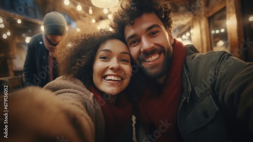 person, christmas, fun, smiling, winter, celebration, friends, happy, woman, man, young, holiday maker, friendship, outdoors, sightseeing, cold, multiracial, happiness, leisure, smartphone, couple, togetherness, photographing, diversity, market, human relationships, entertainment, beautiful, festive, female, young adult, joy, drink, laughing, city, light, christmas, home, horizontal, vacation, night, flirting, teenage, street, meeting, new year, holiday, portrait, communication