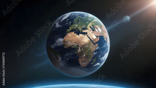 Close look at Planet earth globe view from space showing realistic earth surface and world map as in outer space point of view