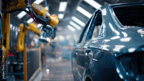 robotic, vehicle, workshop, paint, consistency, detail, meticulous, technology, closeup, craftsmanship, precision, industrial, clean, tool, equipment, close, medium, robotic, system, coat, highlighting, surrounding