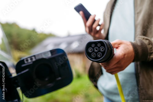 charging, closeup, electric car, man, plug, male, alternative, smartphone, solar panel, house, eco, charge, power, vehicle, hand, ecology, beard, insurance, energy, technology, cable, sunlight, charger, roof, sustainable, connector, app, environment, ecological, electricity, fuel, station, risk, transportation, battery, electric, morning, green, engine, renewable, sustainability, parking, electric motor, copy space