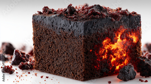 cake, chocolate, chocolate cake, lava, dessert, isolate, food, flames, fire, burn, light, bakery, baked, isolated, cream, snack