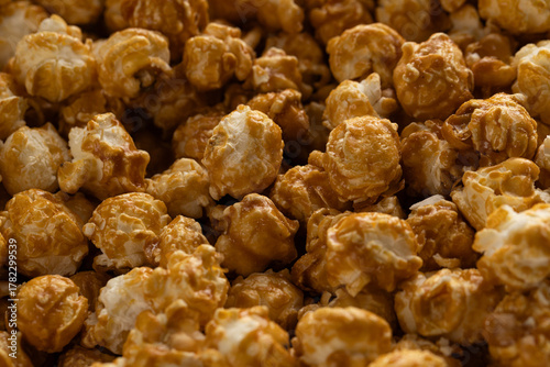 Close Up Full Frame Caramel Popcorn Texture Background