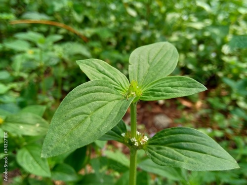 Close up green spermacoce assurgens (Borreria assurgens, Spermacoce remota, Spermacoce suffrutescens) with natural background.