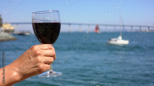 wine, glasses, hold, drink, san diego, bay, red, celebration, view, beverage, party, isolated, toast, water, festival, wine glass, woman, holding, raise, red wine, summer, burgundy, boat, beautiful, outside, blue, sunny, sky
