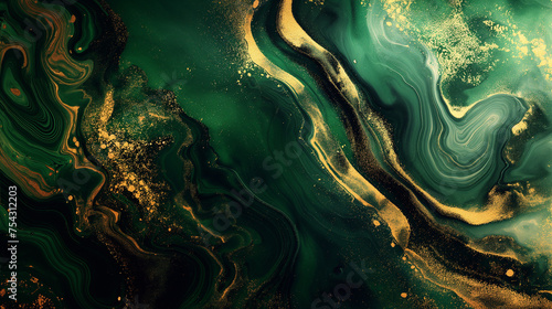 Close up Interior marble with gold ornaments in green tones. Marble shapes for kitchen and bathroom. Green stone types. Green marble floor. Green marble wall