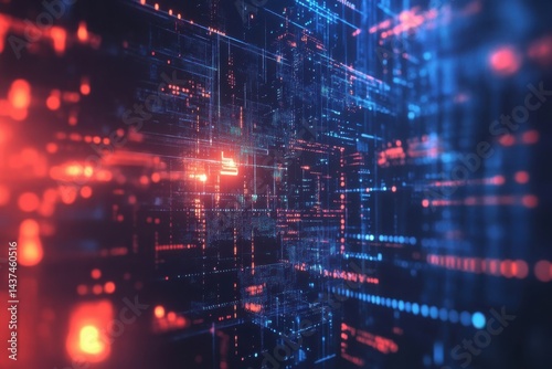 Close up of a digital futuristic woman with blue eyes and glowing cybernetic enhancements
