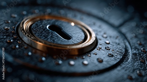 keyhole, security, lock, access, digital, protection, datum, privacy, technology, metallic, gold, ring, circuit, texture, water, droplet, closeup, mystery, secret, solution, system, abstract